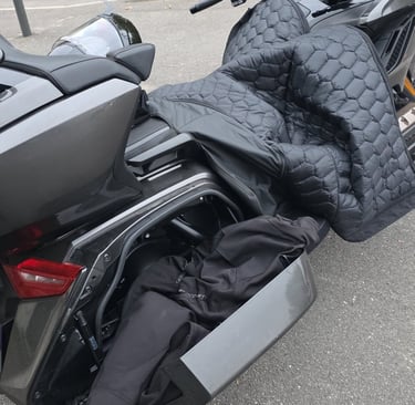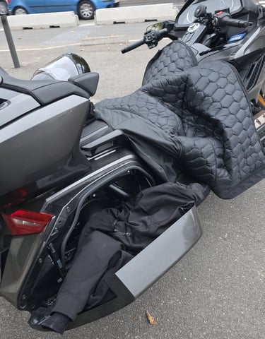 Profitez du confort de la Honda Goldwing avec son large dossier chauffant, sa selle chauffante ainsi qu'un tablier de protection épias pour le froid et la pluie.